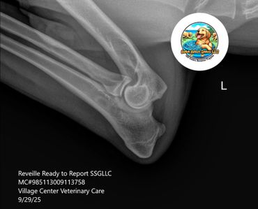 Reveille is named after the military bugle call at sunrise, signaling the start of the duty day. She is our fun-lovin' ray of golden sunshine! Reveille loves the water and has playful personality. She always aims to please.